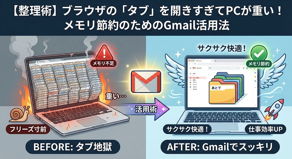 【整理術】ブラウザの「タブ」を開きすぎてPCが重い!メモリ節約のためのGmail活用法