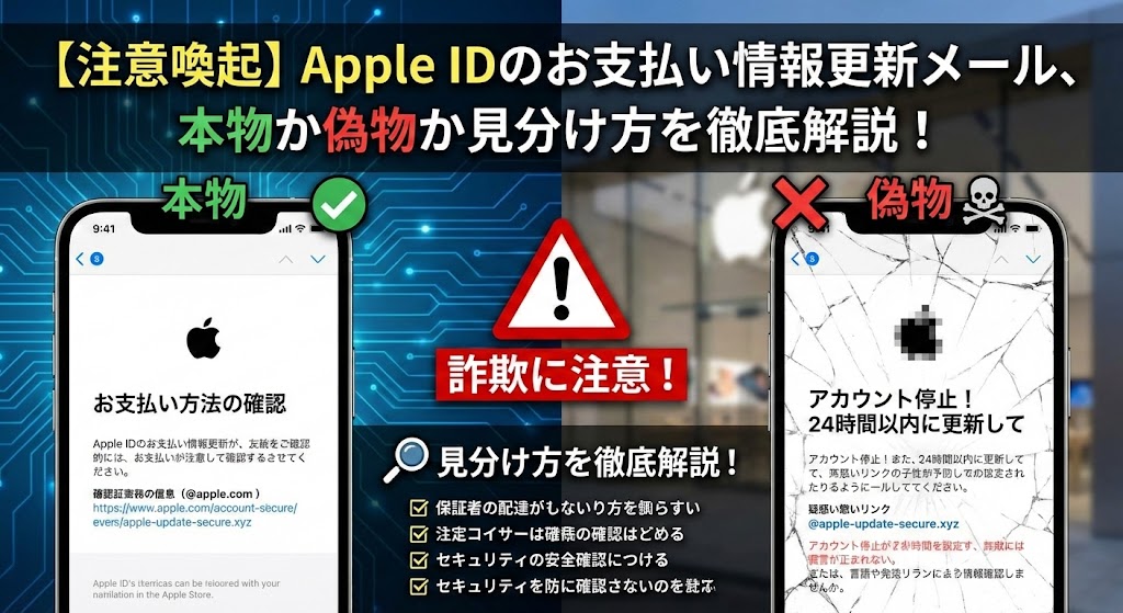 Apple IDのお支払い情報更新メール、本物?偽物?見分けるポイント