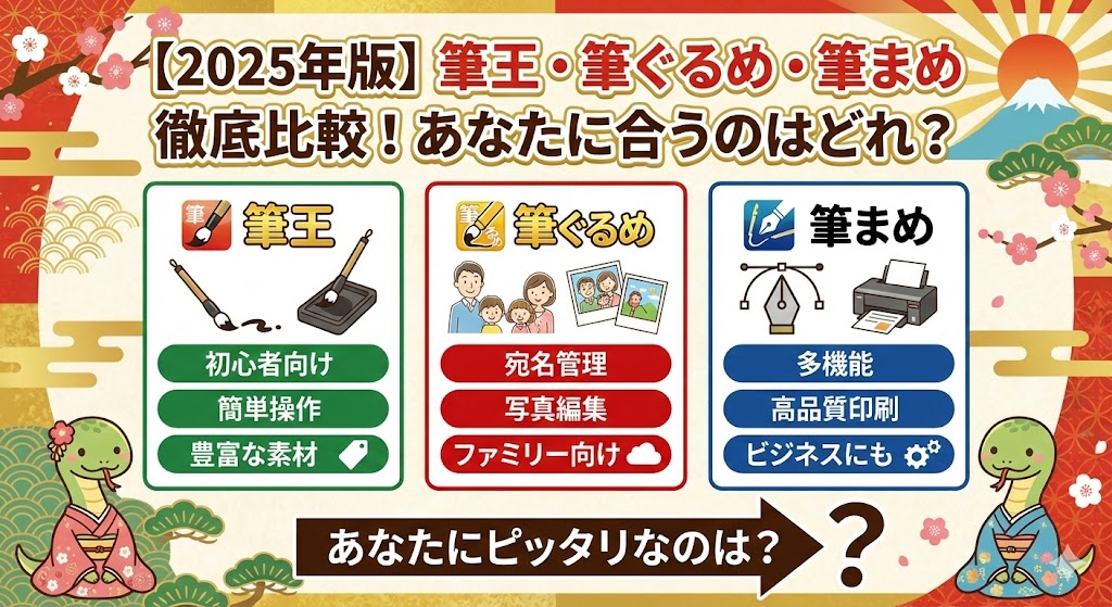 2025年の年賀状作成において、「筆王」「筆ぐるめ」「筆まめ」のどれを選べば正解か、答えは見えましたでしょうか?