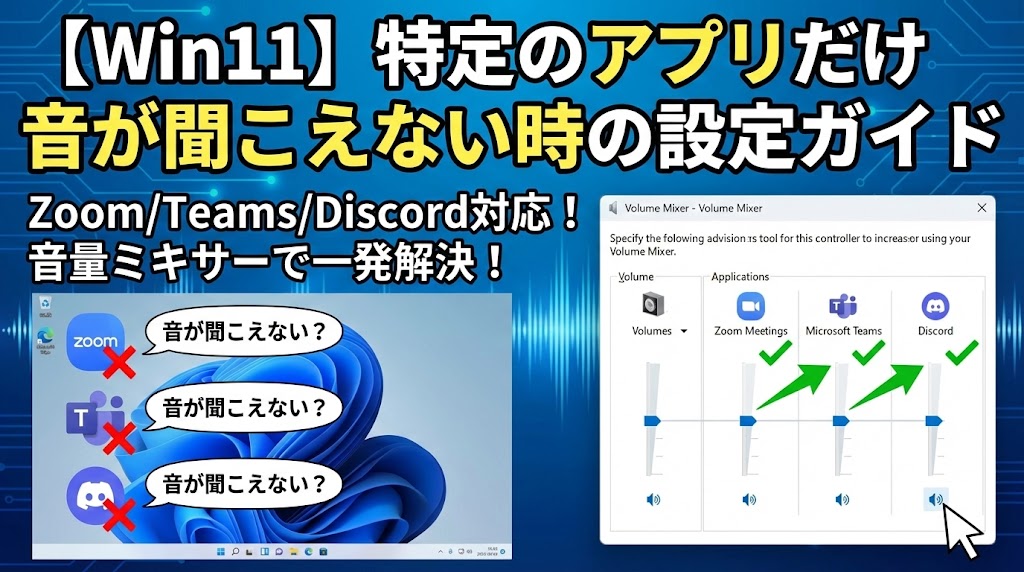 【Win11】特定のアプリ(Zoom/Teams/Discord)だけ音が聞こえない時の設定ガイド パソコン