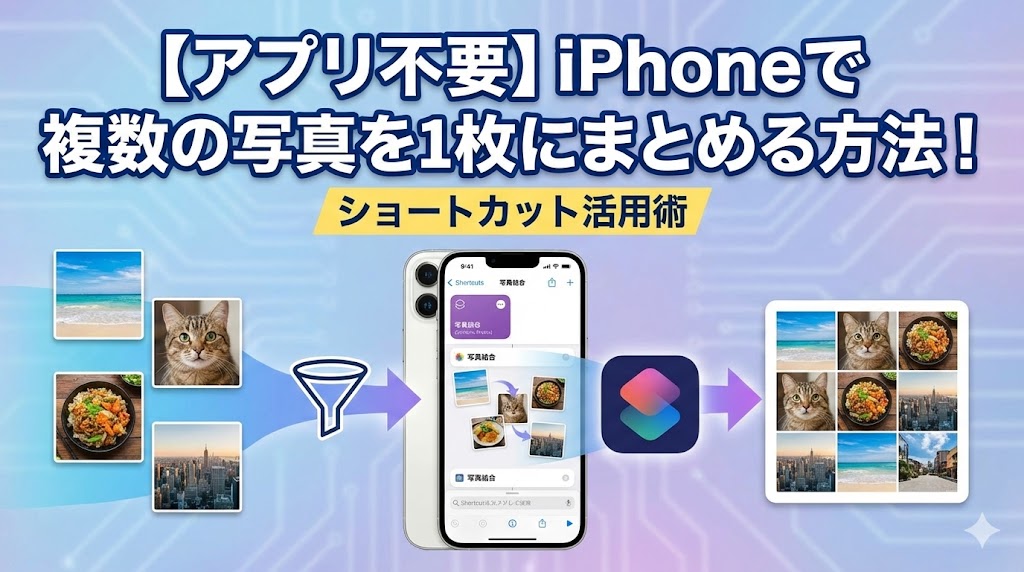 - ✅ 最短・無料で解決:純正アプリ「ショートカット」を使えば、広告なしで高画質に結合できます(作り方へジャンプ)。