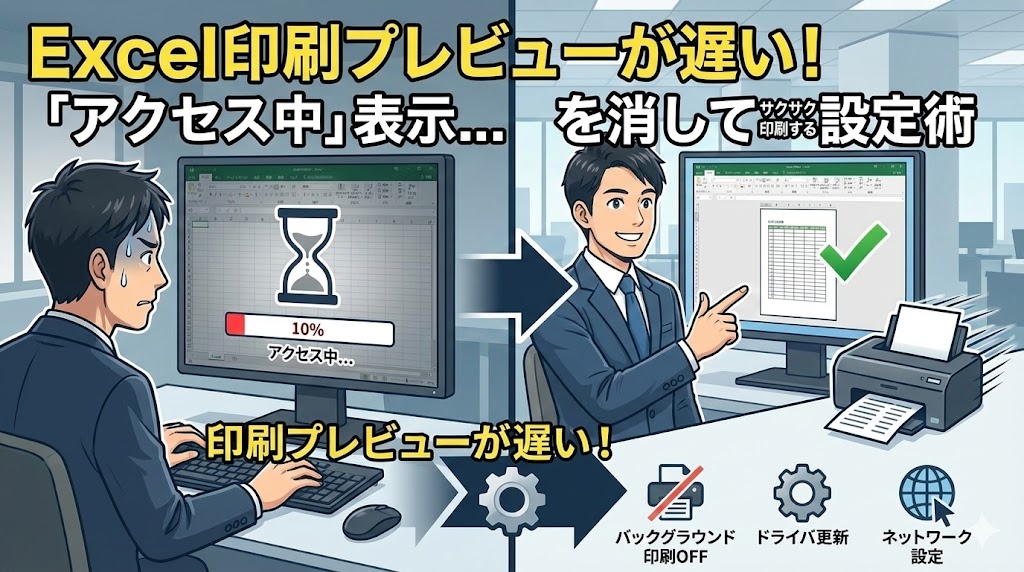 Excelの「プリンターにアクセス中」問題。 一見すると地味なトラブルですが、毎日積み重なれば、あなたの貴重な人生の時間を何時間も、何十時間も奪っていく「時間泥棒」です。