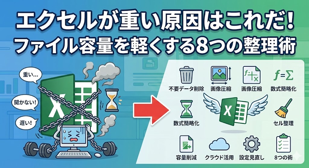 ※この記事では、企業のDXコンサルタントとして数々の「激重エクセル」を救ってきた筆者が、誰でも安全にできる軽量化テクニックを完全網羅して解説します!