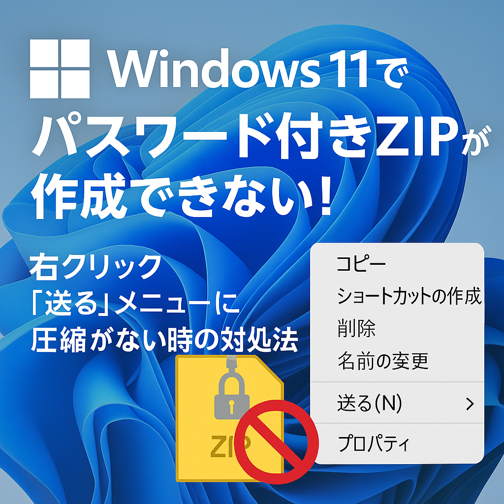 Windows 11(そして10も)の標準機能では、パスワード付きZIPは「作れません」。