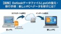 次はこの作成した「.pstファイル」を使って、新しいパソコンのOutlookにメールを戻す作業(インポート)です。