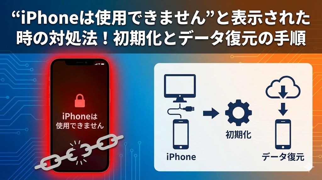 「iPhoneは使用できません」というメッセージは、あなたのiPhoneが盗難や不正アクセスから大切なデータを守るために発動した「最強のセキュリティガード」なんです。 つまり、iPhoneが正常に仕事をしている証拠なんですね。