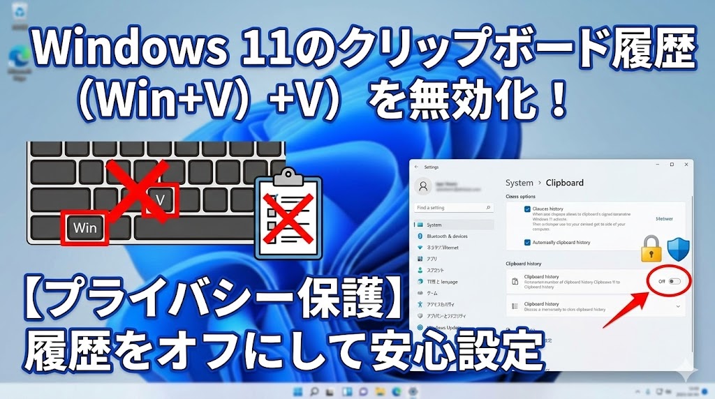 Windows 11を使っていて、ふとした瞬間にキーボードの「Windowsキー + V」を押してしまい、画面の右下にズラリと並んだ「過去のコピー履歴一覧」を見て、背筋が凍るような思いをしたことはありませんか?