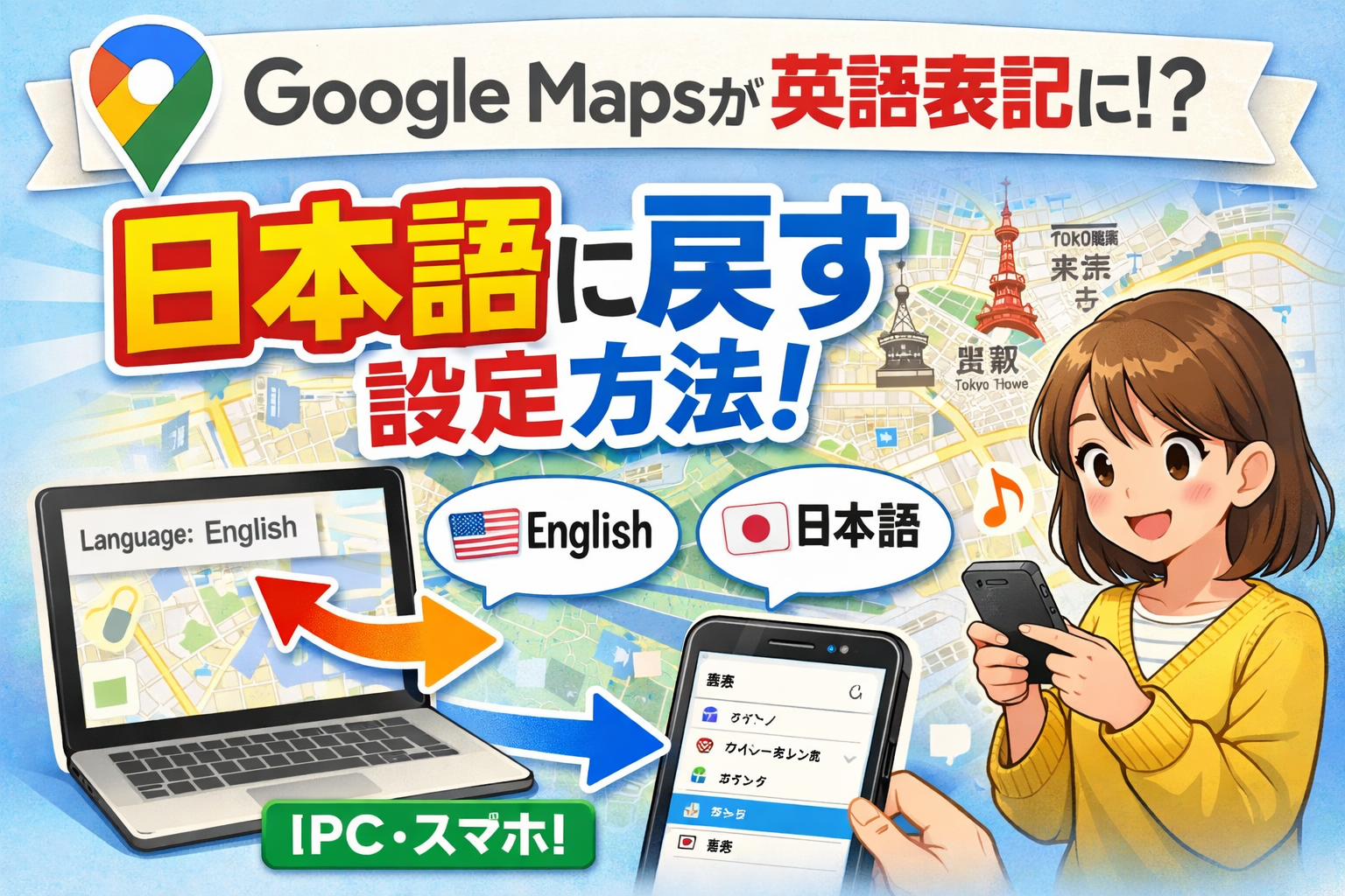 ※この記事は、突然の英語表記にパニックになっている方のために、スマホ・PC全ての解決策を網羅した「Googleマップ日本語化・完全バイブル」です。目次からお使いのデバイスを選んで進んでくださいね!