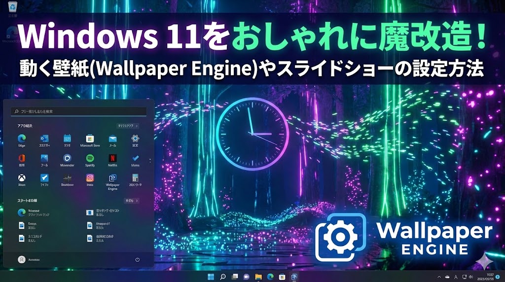 本記事では、Windows 11標準の機能を使った基礎的な設定から、世界中のPCゲーマーが愛用する最強ツール「Wallpaper Engine」の導入方法、さらには無料で使える「Lively Wallpaper」までを網羅しました。