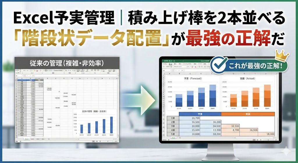 【結論】予実比較を最も美しく見せるのは「階段状配置」一択である