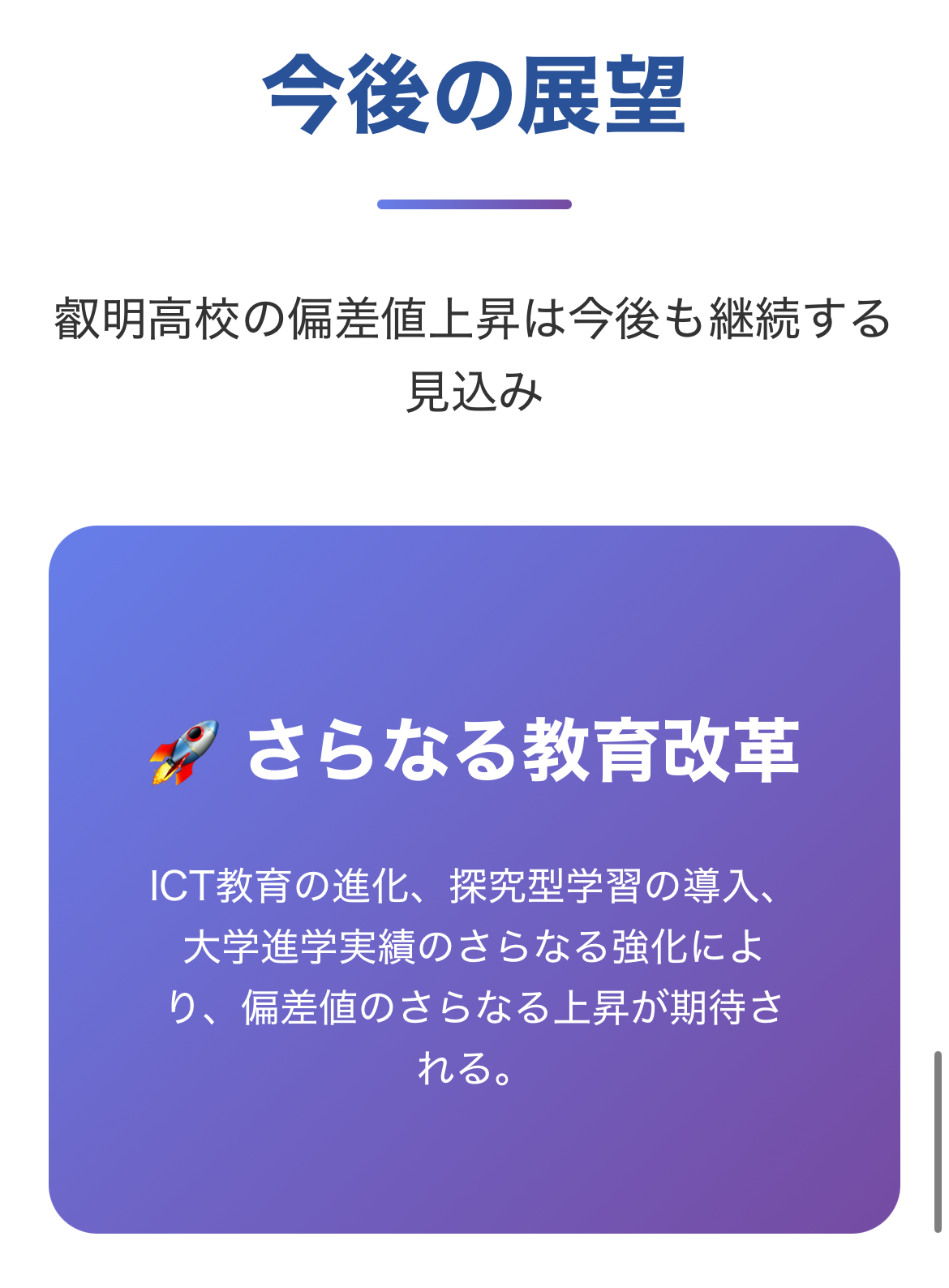 このように、叡明高校はこれからも進学校として成長が期待され、偏差値アップも持続的に続いていくと見られます。