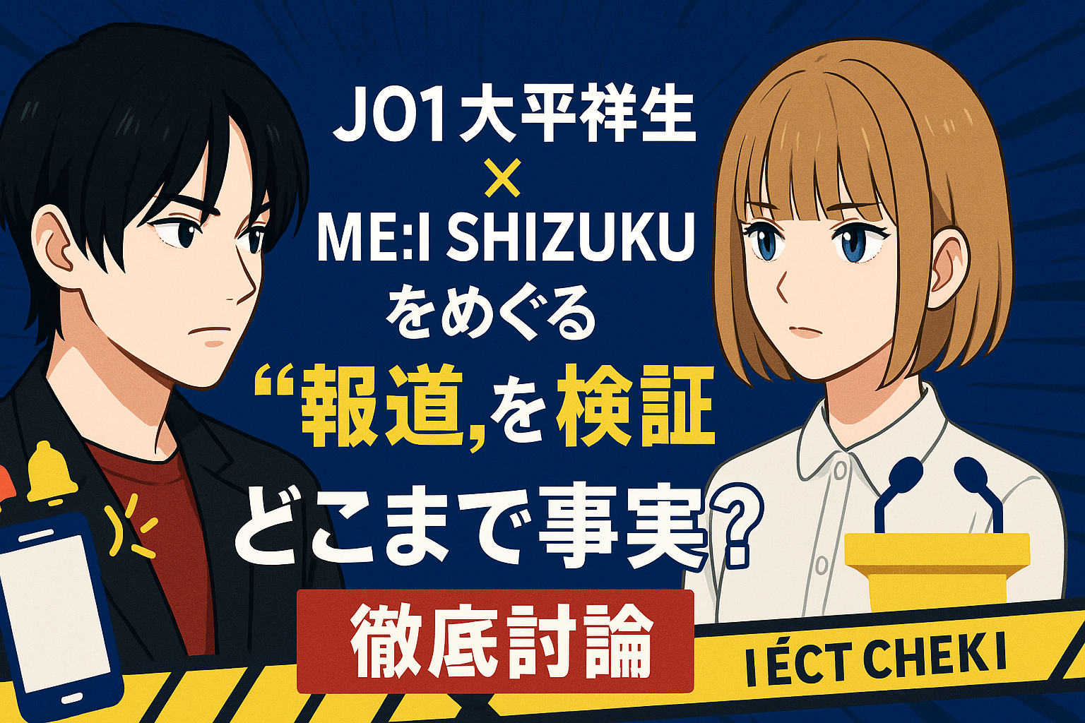 文春オンラインが突然スクープを放ち、JO1の大平祥生さんがME:IのSHIZUKUさん、つまり飯田栞月さんと、一般女性の方との二股交際を報じたんです。