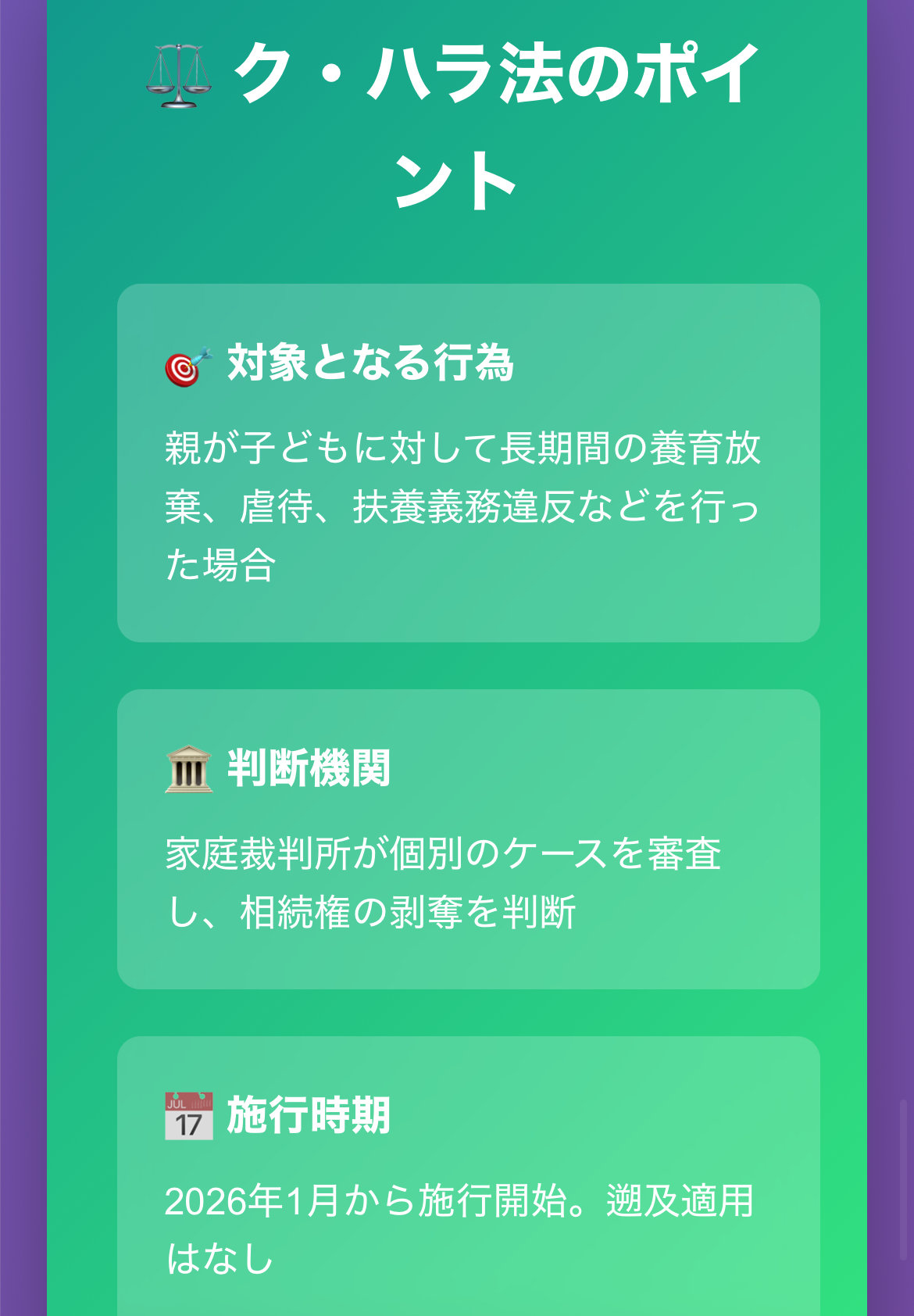 クハラ 母親 遺産 結果は、日本社会や日本の法制度にも大きな示唆をもたらしています。結論として、家族内で長期間にわたり親の責任を果たさなかった場合でも、現行法のもとでは相続権が維持される現実は日本でも同じであり、今後の法改正や社会的議論のきっかけとなり得ます。