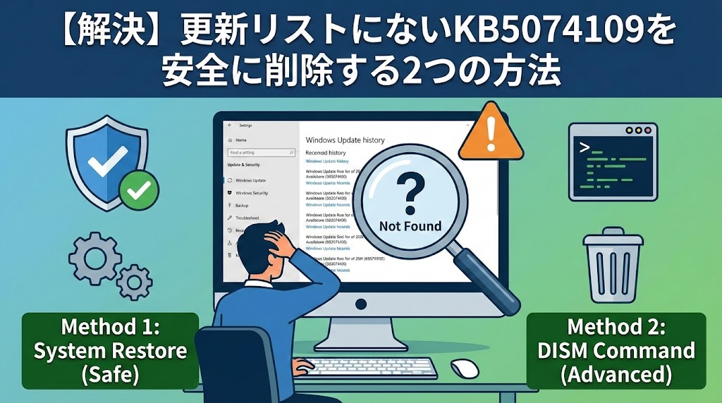 この記事では、元インフラエンジニアである私が、なぜYouTubeやネットで紹介されている「wusaコマンド」が通用しないのかという本当の理由と、プロが現場で実際に使っている「本当に消せる2つの解決策」を、専門知識がない方でも迷わず実行できるように徹底解説します。