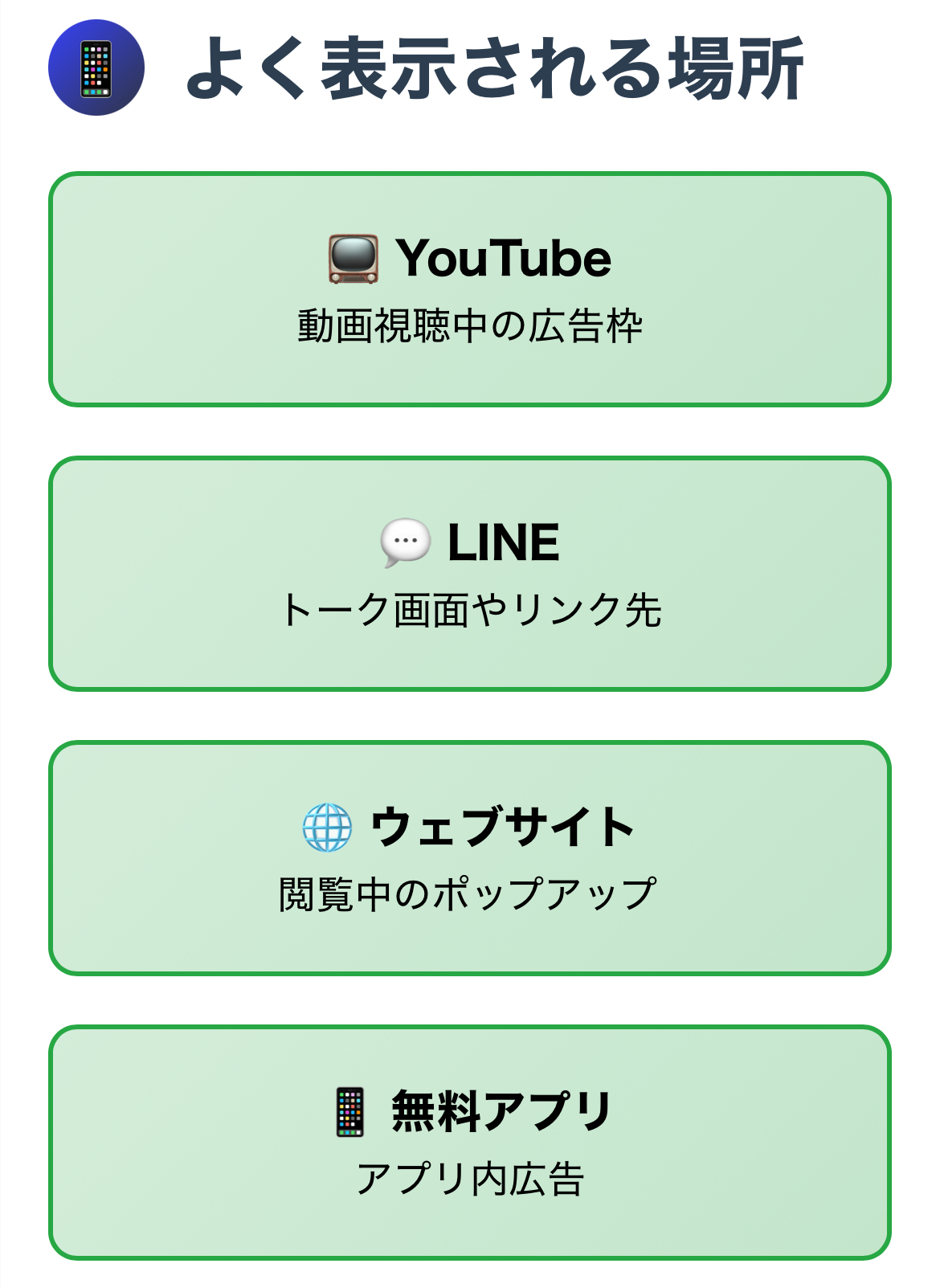 こうした表示が現れるタイミングとしては、LINEのトーク画面でリンクを開いた時や、YouTubeで動画視聴中に広告枠で突然「PDFの有効期限が切れました」「今すぐ更新してください」などのメッセージが出るケースが多いです。これはLINEやYouTube自体が発している公式の警告ではなく、外部の広告業者やアプリが表示させているものであり、慌てて対応する必要はありません。