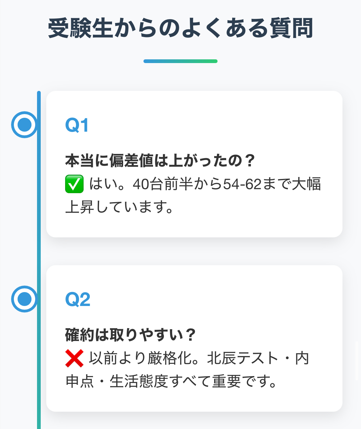 また、「SNSや受験掲示板でも偏差値が年々上がっているという情報をよく見る」「推薦や確約基準も厳しくなったので、しっかり対策しないと合格できない」といったコメントも多く見られます。