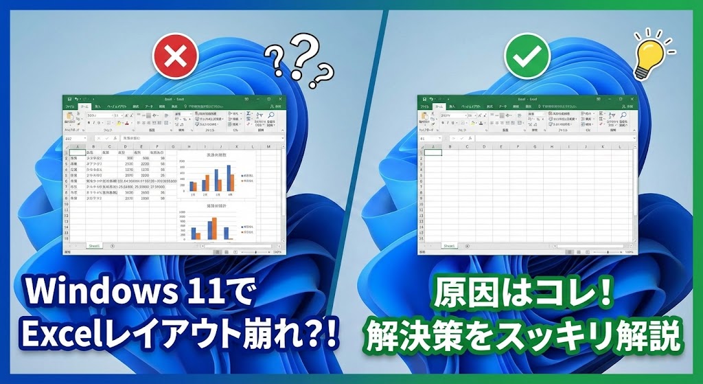 ※この記事は、Windows 11環境で多発する「Excelレイアウト崩れ」に悩むあなたのために、原因の特定から具体的な修正手順までを網羅した「完全攻略バイブル」です。目次から気になるところへ飛んでくださいね!