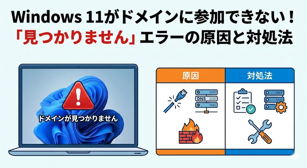- ✅ エラーの9割は「DNS」が犯人:ルーターのIPではなく、必ず「ADサーバーのIP」を指定してください(解決策3へジャンプ)。