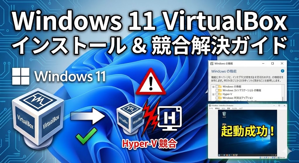 Windows 11でのVirtualBox導入、一筋縄ではいかない部分もありましたが、ここまでのステップをクリアしたあなたのPCは、もう立派な「仮想化ラボ」に変身しているはずです!✨